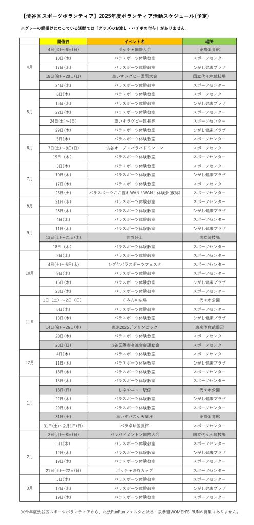 ◆2025年度 ボランティア活動年間予定表